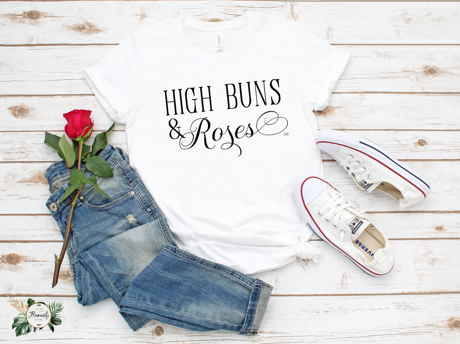"High Buns & Roses" T-Shirt Wht